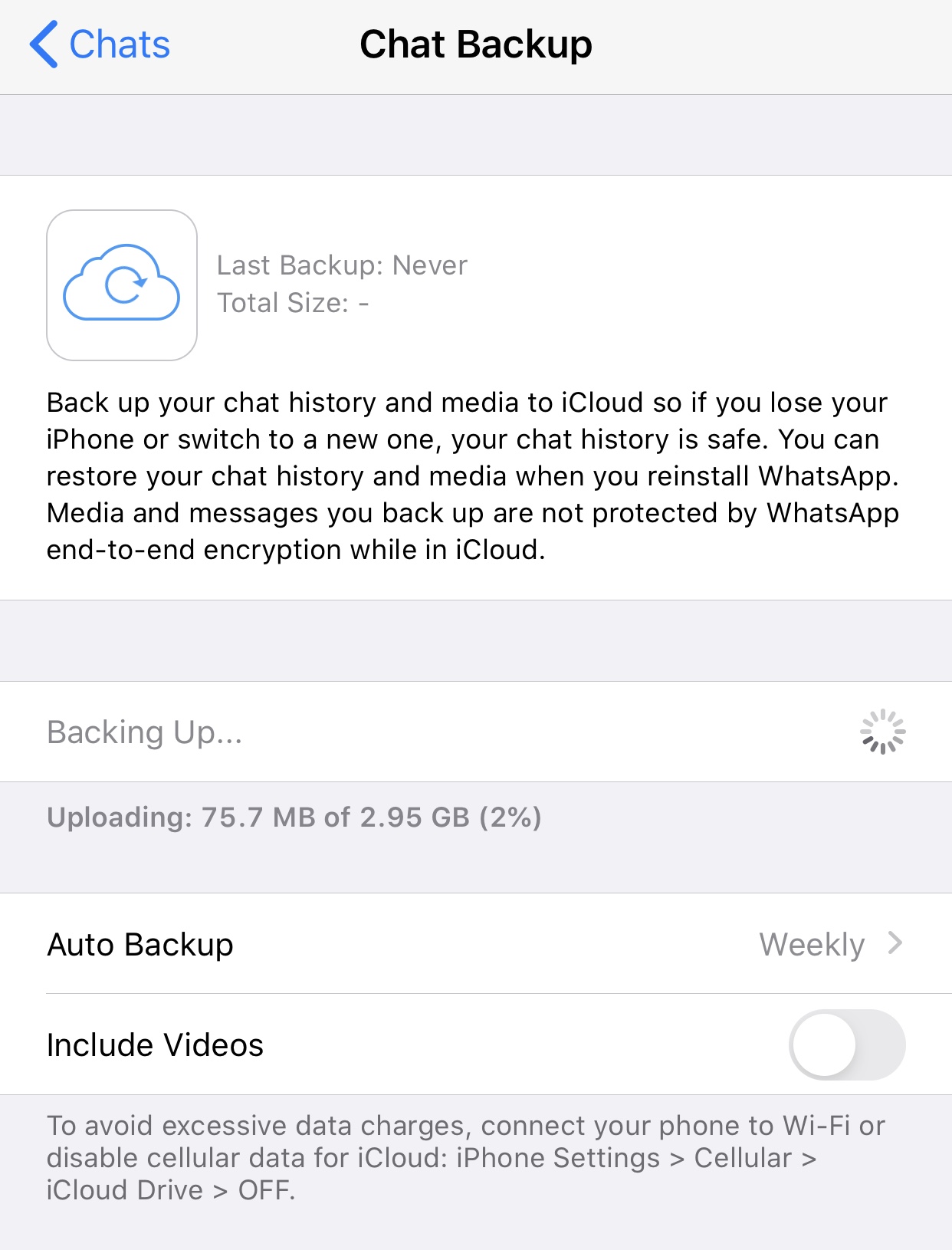 - Whatsapp Chat Backup Stuck While Uploading To Icloud ... - Solution (At Least For Me):